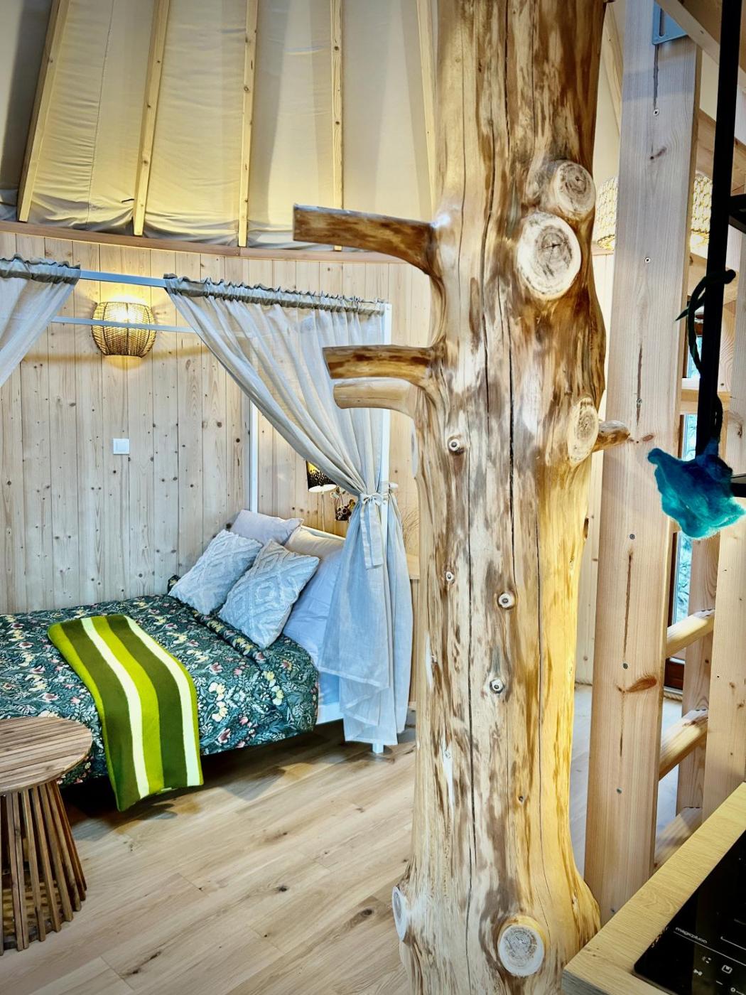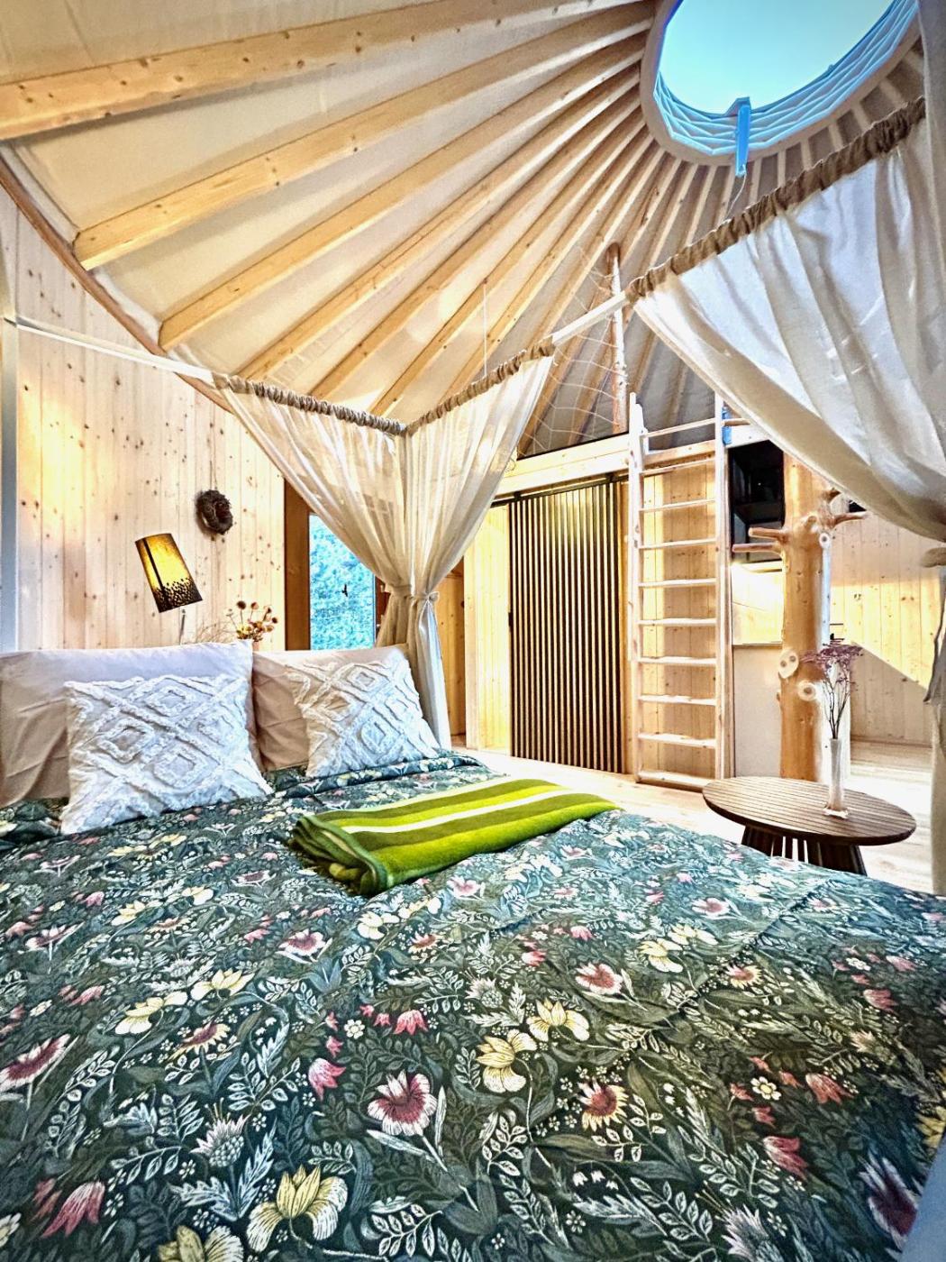 Tent. This tent features a hot tub. The fully equipped kitchenette has a stovetop, a refrigerator, kitchenware and a toaster. The tent features air conditioning, a private entrance, a terrace with garden views as well as a private bathroom boasting a shower. The unit has 2 beds.